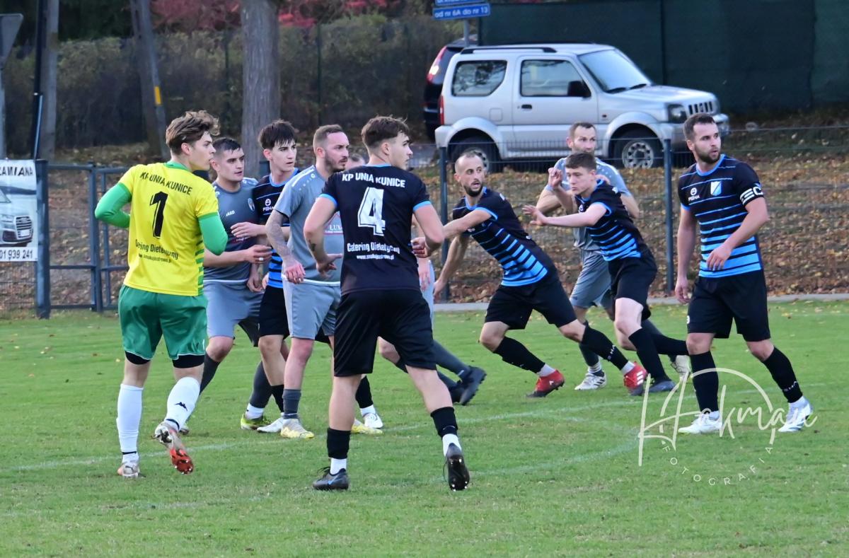 Druga odsłona zaczęła się bardzo podobnie jak pierwsza, czyli od niemrawych ataków podopiecznych Jarka Gada, którego tym razem zabrakło na ławce trenerskiej. Kuniczanie nie mieli pomysłu, jak sforsować gęste zasieki przed bramką gospodarzy i jak ograć dwa wielkie słupy stręczące im na drodze. Miejscowi nie kwapili się do bardziej otwartej gry, a gdy w 75 minucie strzelili drugiego gola to całkowicie okopali się na własnej połowie, zwłaszcza, że sił także zaczęło ubywać. Za to kuniczanie jakby złapali drugi oddech. Wprowadzenie do gry Brazylijczyka Rodriguesa de Almeidy Andre Viniciusa ożywiło grę gości. Jasiek Izdebski zwolniony z zadań napadziorskich mógł w końcu robić to, co robi najlepiej, czyli poigrać z piłką. I to właśnie zrobił. W 88. minucie ograł podmęczonych rywali i posłał piłkę do Andre, który huknął jak z armaty i zrobiło się 2:1. Nie tego się spodziewali gospodarze, którzy chcieli w spokoju dograć to spotkanie.