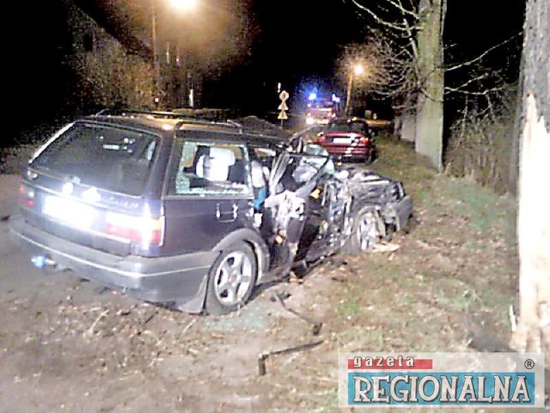 Auto obróciło się i dachem uderzyło o drzewo. Siedzący z przodu Marcin doznał najpoważniejszych obrażeń. Zmarł w trakcie akcji reanimacyjnej. Pasażerka, siedząca z tyłu, z ciężkimi obrażeniami głowy została przewieziona do szpitala w Nowej Soli. Jej stan jest ciężki. W nowosolskim szpitalu przeszła operację trepanacji czaszki. 25-letni kierowca trafił do szpitala w Żarach. Był trzeźwy.