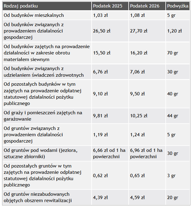 – Pani burmistrz zaproponowała urealnienie i aktualizację podatków od nieruchomości o wskaźnik inflacyjny – zakomunikowała Agnieszka Sobieniak, skarbnik Kożuchowa i przedstawiła, o ile podskoczą te opłaty (stawki podajemy w tabelce).
