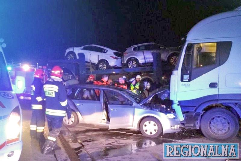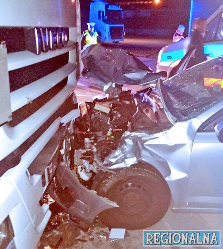 Poszkodowani, kierowca (39 l.) i dwóch pasażerów (20 l. i 35 l.), wjechali (w czwartek, 26.10) o godz.6 rano skodą octavią w przód zaparkowanej prawidłowo na terminalu ciężarówki Iveco. Mężczyźni o własnych siłach opuścili rozbity samochód. W akcji ratunkowej uczestniczyło 13 strażaków, trzy karetki pogotowia i policja. Ze wstępnych ustaleń wynika, że kierujący skodą stracił panowanie nad pojazdem skręcił i uderzył w ciężarówkę. Kierowcy ciężarówki, mieszkańca Zielonej Góry nie było w samochodzie.