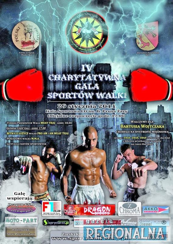 Głównym punktem imprezy będzie turniej tajskiego boksu „Bitwa o Łużyce” oraz pokazowa walka MMA. Organizatorzy, Żarski Klub Sportów Walki, przygotowali wiele dodatkowych atrakcji. Podczas gali wylicytować będzie można wiele ciekawych gadżetów sportowych, m.in.: rękawice pierwszego Polaka w prestiżowej amerykańskiej organizacji UFC – Tomka Drwala, rękawice bokserskie Tomasza Cieślińskiego, pierwszego polskiego mistrza świata w muay thai, koszulkę z autografami piłkarzy Śląska Wrocław i wiele innych. Cały dochód z licytacji zostanie przeznaczony na pomoc Bartoszowi Wojtczakowi. Ten dzielny 7-latek jest chory na dystrofię mięśniową, zwaną potocznie zanikiem mięśni. Jest to ciężka choroba, na którą obecnie nie ma lekarstwa. Uniemożliwia ona prawidłowy rozwój wszystkich mięśni szkieletowych. Jedynym sposobem na przedłużenie Bartkowi sprawności fizycznej jest intensywna rehabilitacja pod okiem wykwalifikowanych fizjoterapeutów.Ta jednak jest bardzo kosztowna.