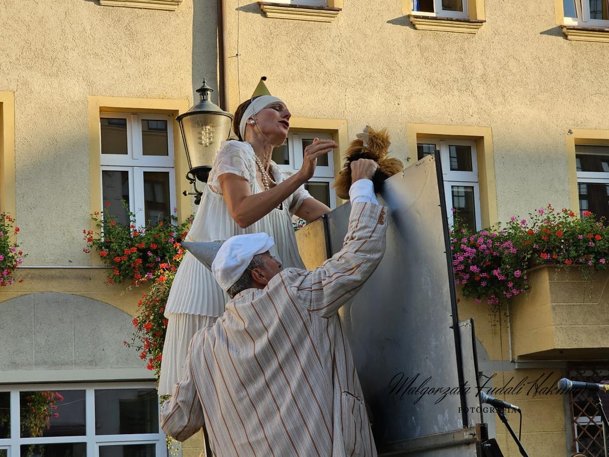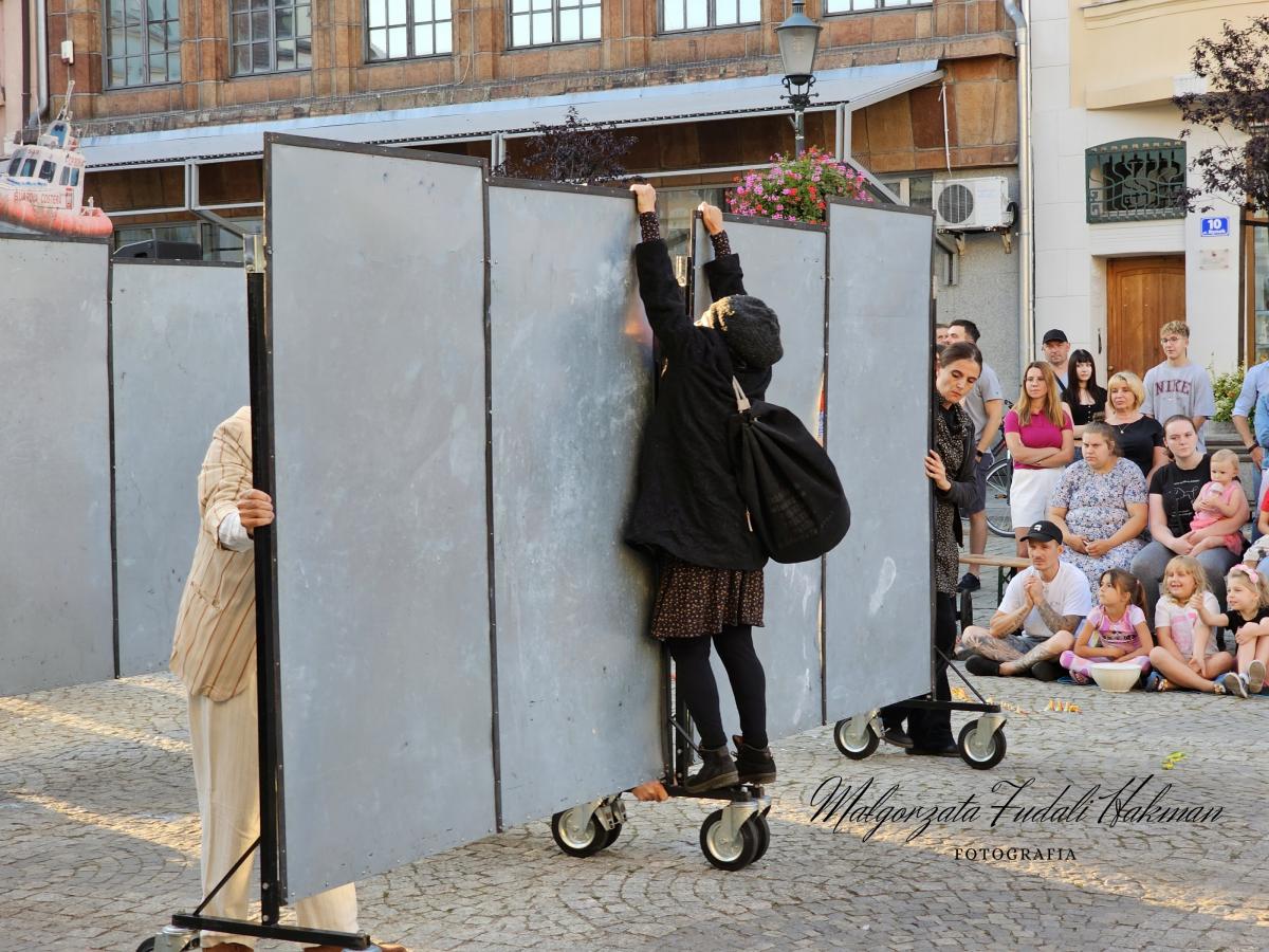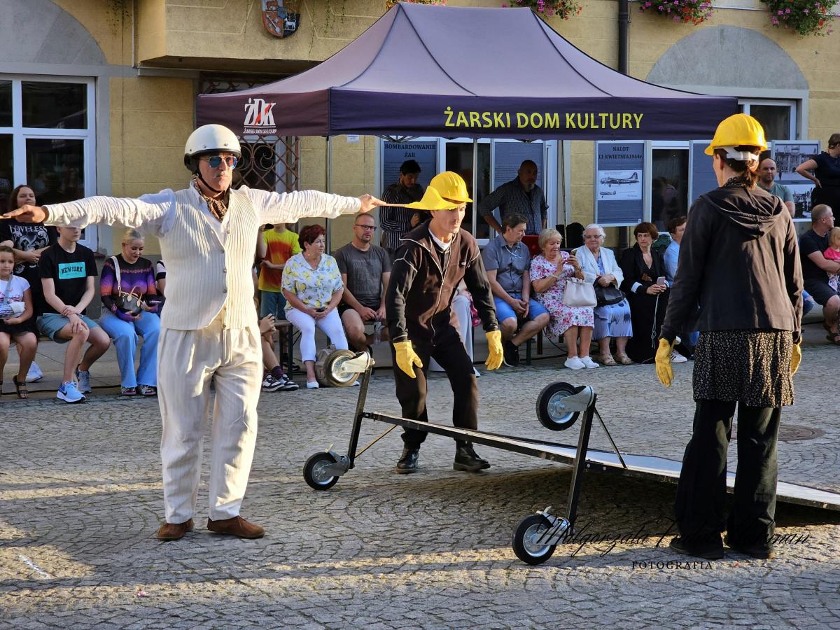W czwartkowy wieczór, 8 sierpnia, na Rynku Miejskim w Żarach w ramach Międzynarodowych Plenerowych Spotkań ze sztuką zaprezentował się Teatro Due Mondi z przedstawieniem Wall Cracks.