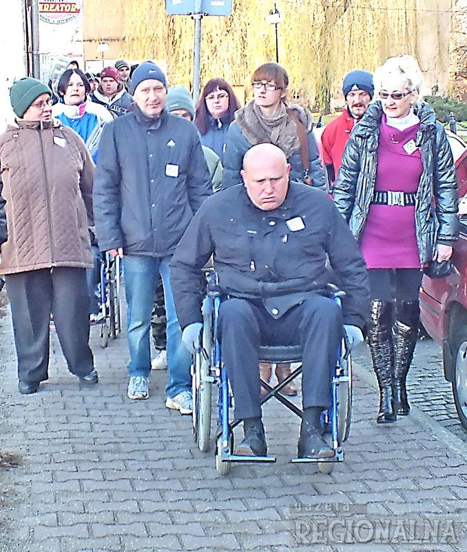 Wózkiem inwalidzkim sprzed siedziby Miejskiego Ośrodka Pomocy Społecznej przy ul. Domańskiego zajechał (29.11) pod Ratusz Wacław Maciuszonek, burmistrz Żar. Tę samą trasę w zasłaniających oczy goglach przeszedł jego zastępca Patryk Faliński. W ten sposób burmistrzowie obchodzili trwający właśnie Tydzień Osób Niepełnosprawnych.