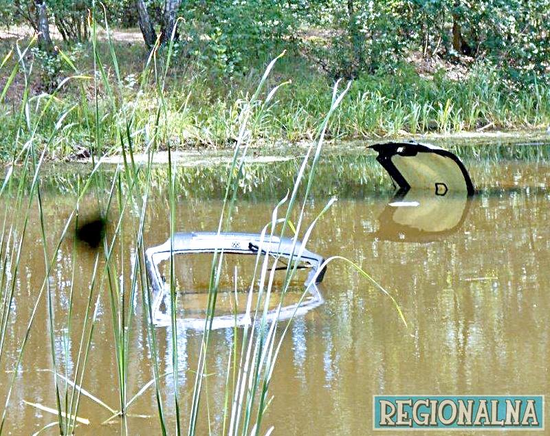 Auta na dnie zbiornika nieopodal wsi, nazwanego przez mieszkańców ruskim stawem, mieszkańcy zauważyli we wtorek, 23 lipca.