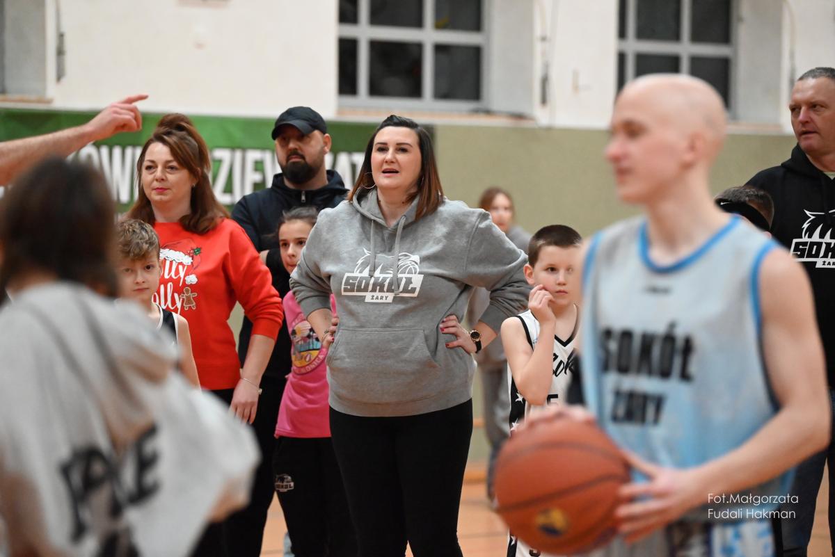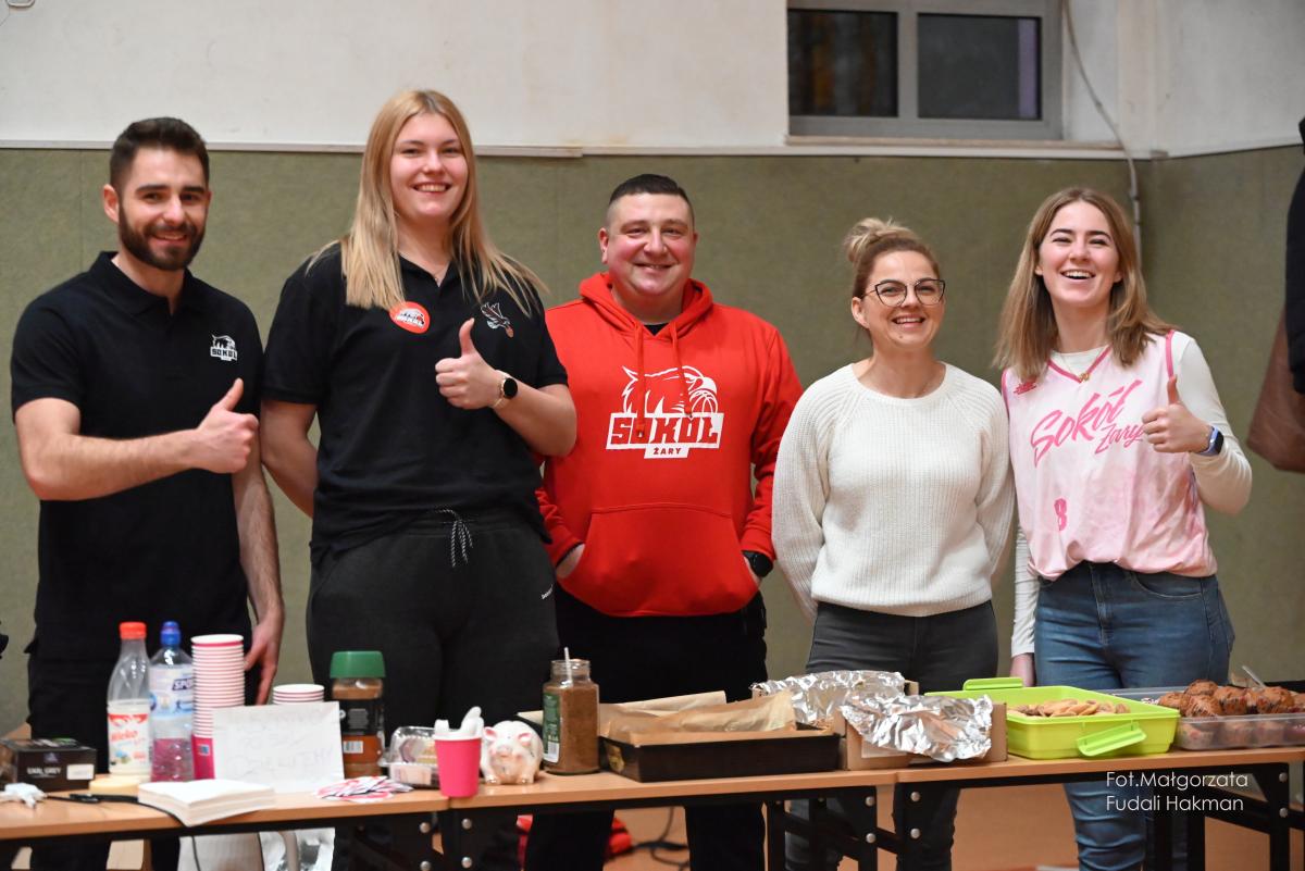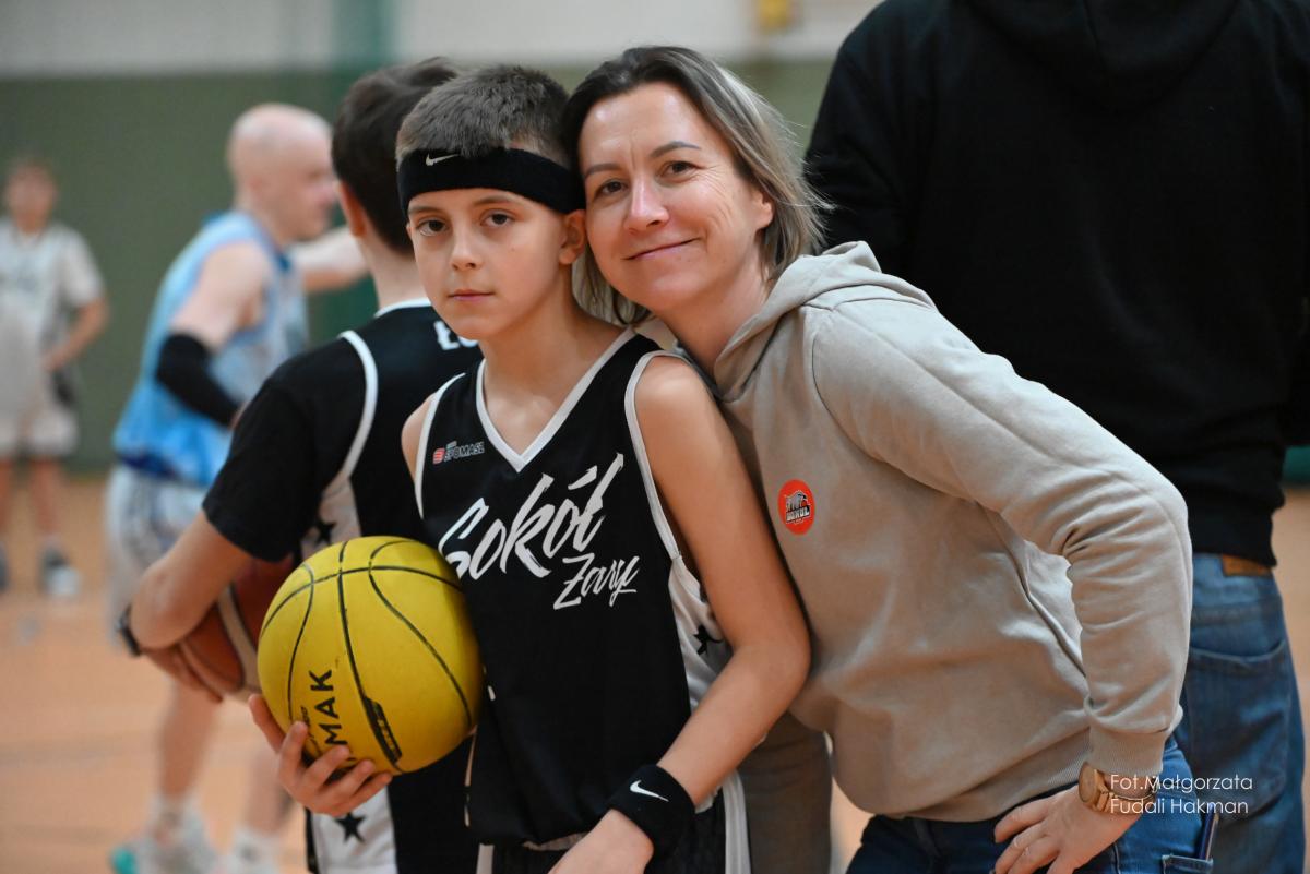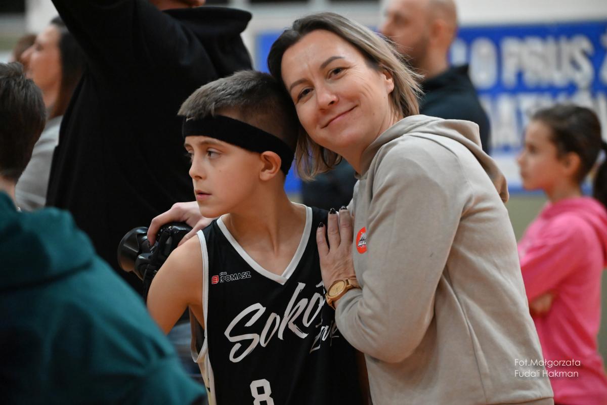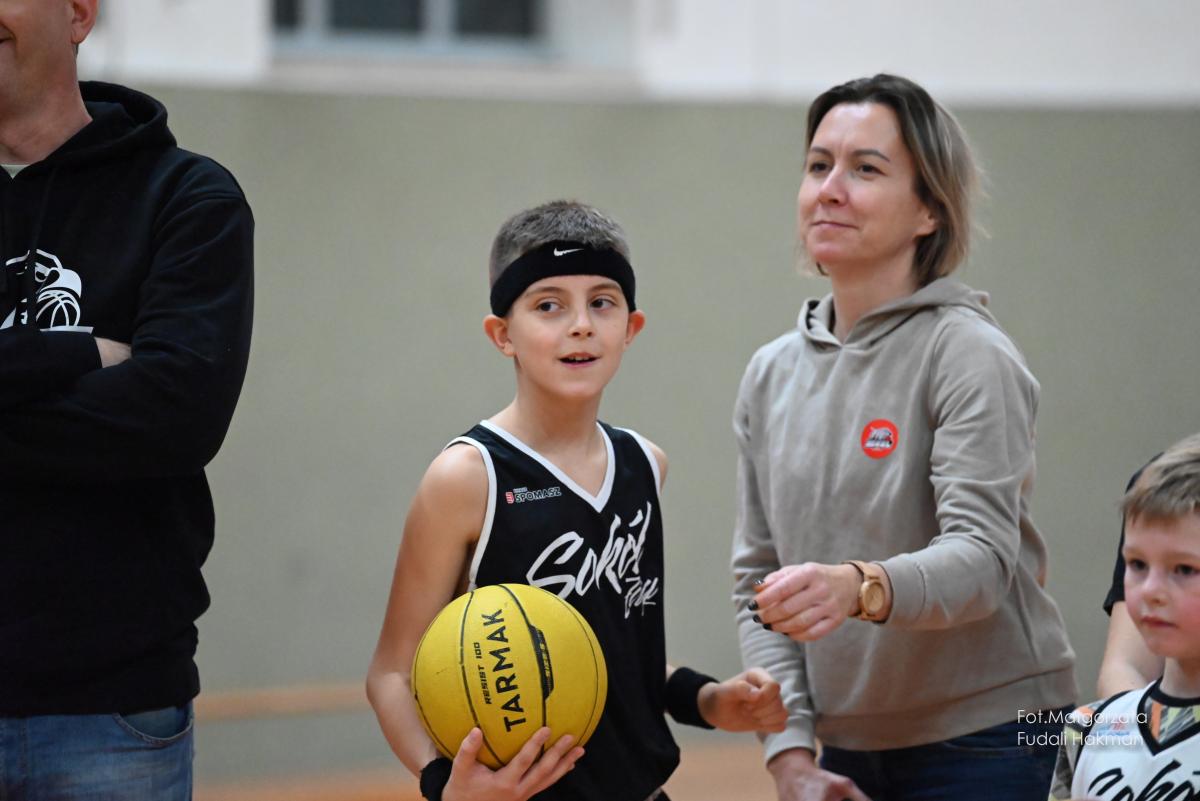 W przerwach między kwartami swoje mecze rozegrały – drużyny dziewcząt i chłopców. Rodzinny konkurs rzutów do kosza, przyciągnął tłum chętnych, którzy szybko zweryfikowali swoje umiejętności koszykarskie. Zabawa była przednia, ale wszystko z myślą o pomocy zawodnikowi Sokoła. – Dziękujemy wszystkim za przybycie i wsparcie – mówi ciocia Miłosza, która prowadziła z trenerkami Sokoła kiermasz.