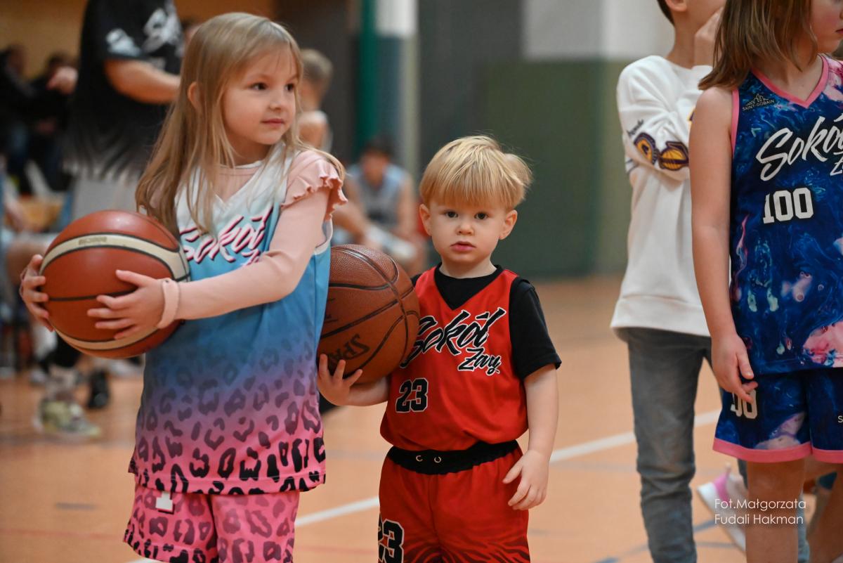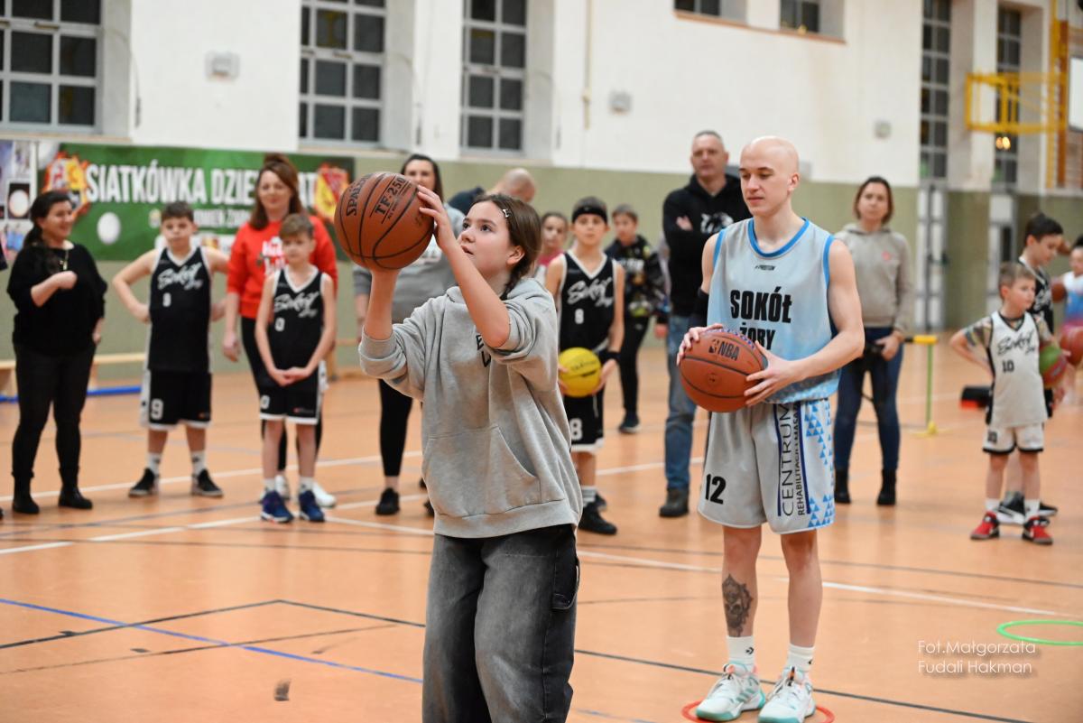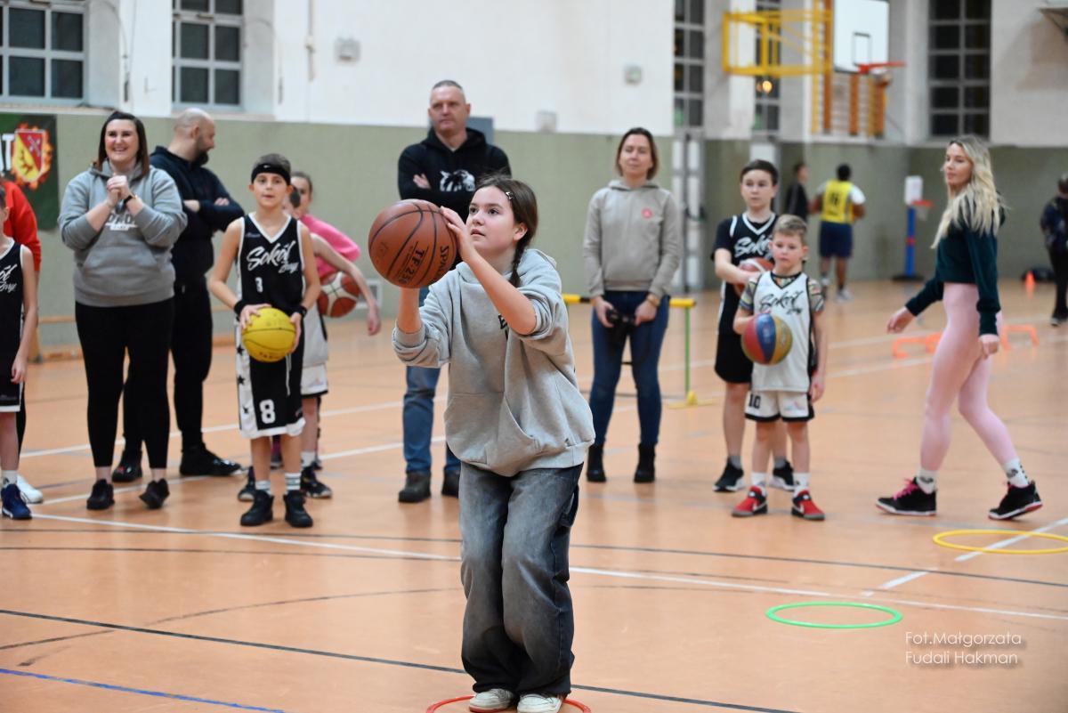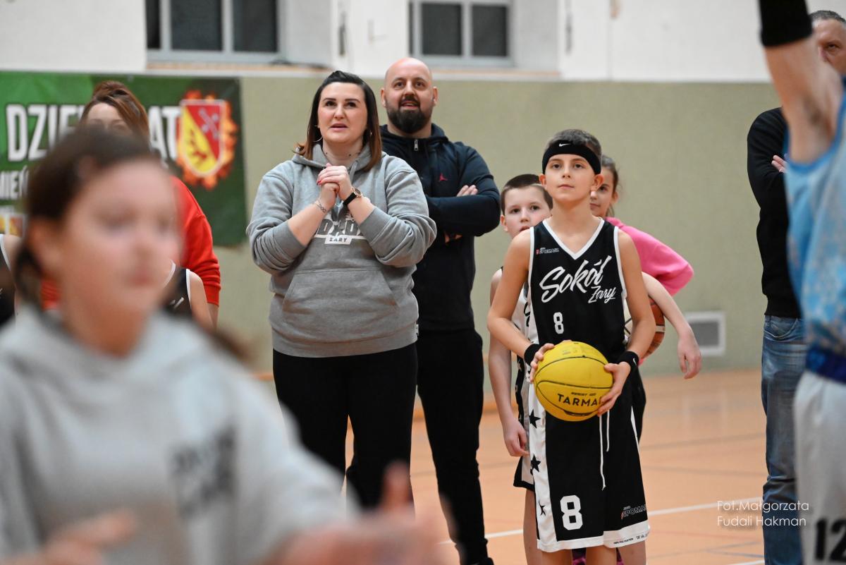 W przerwach między kwartami swoje mecze rozegrały – drużyny dziewcząt i chłopców. Rodzinny konkurs rzutów do kosza, przyciągnął tłum chętnych, którzy szybko zweryfikowali swoje umiejętności koszykarskie. Zabawa była przednia, ale wszystko z myślą o pomocy zawodnikowi Sokoła. – Dziękujemy wszystkim za przybycie i wsparcie – mówi ciocia Miłosza, która prowadziła z trenerkami Sokoła kiermasz.