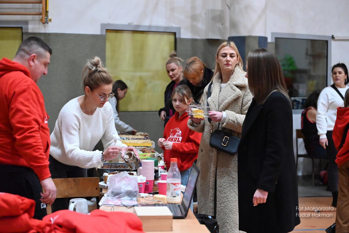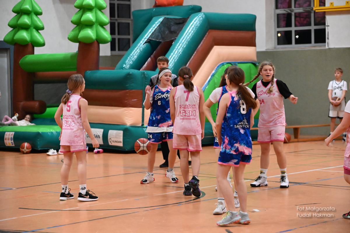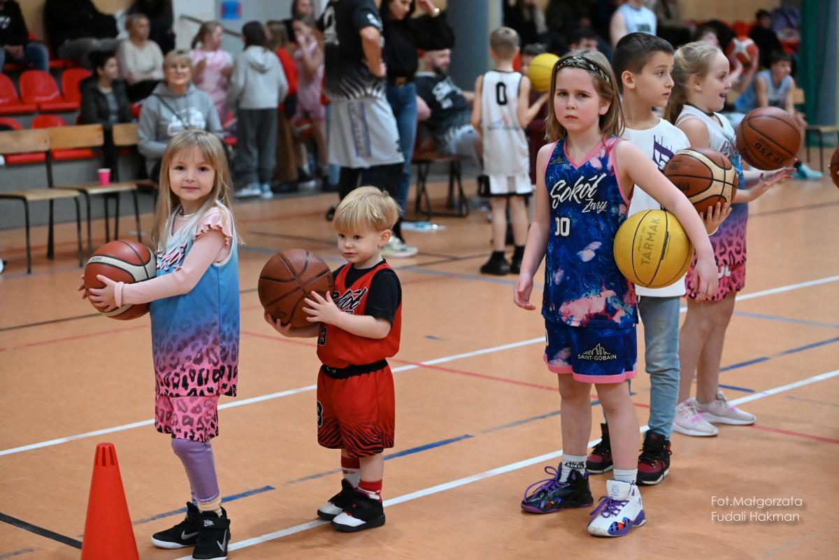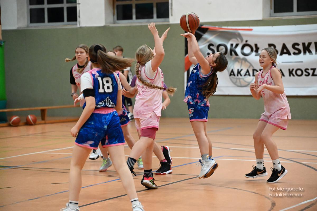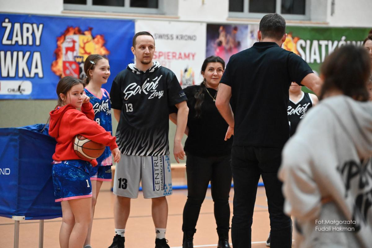 W przerwach między kwartami swoje mecze rozegrały – drużyny dziewcząt i chłopców. Rodzinny konkurs rzutów do kosza, przyciągnął tłum chętnych, którzy szybko zweryfikowali swoje umiejętności koszykarskie. Zabawa była przednia, ale wszystko z myślą o pomocy zawodnikowi Sokoła. – Dziękujemy wszystkim za przybycie i wsparcie – mówi ciocia Miłosza, która prowadziła z trenerkami Sokoła kiermasz.
