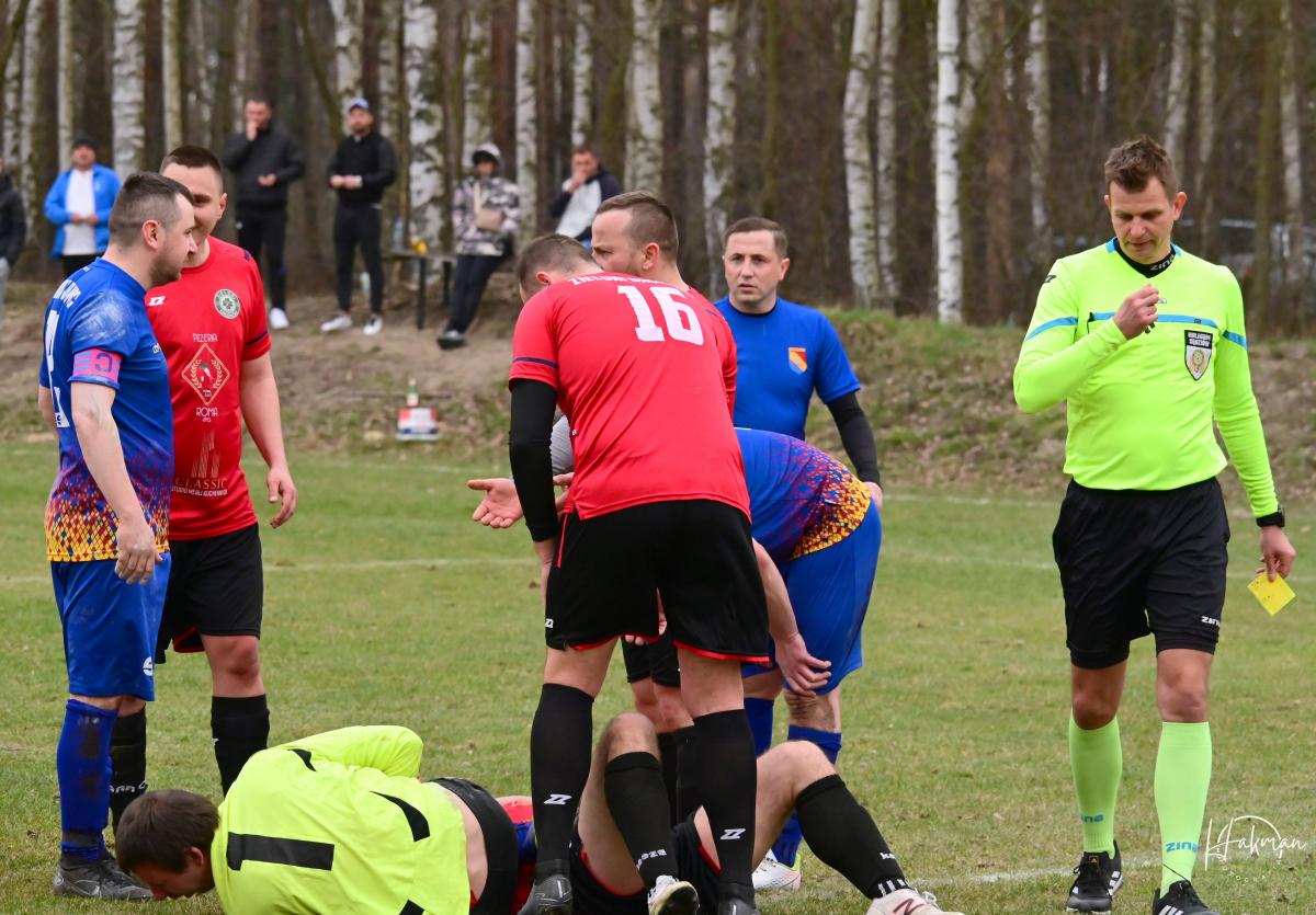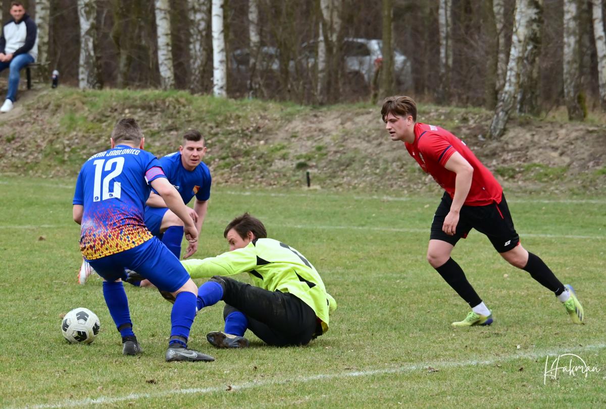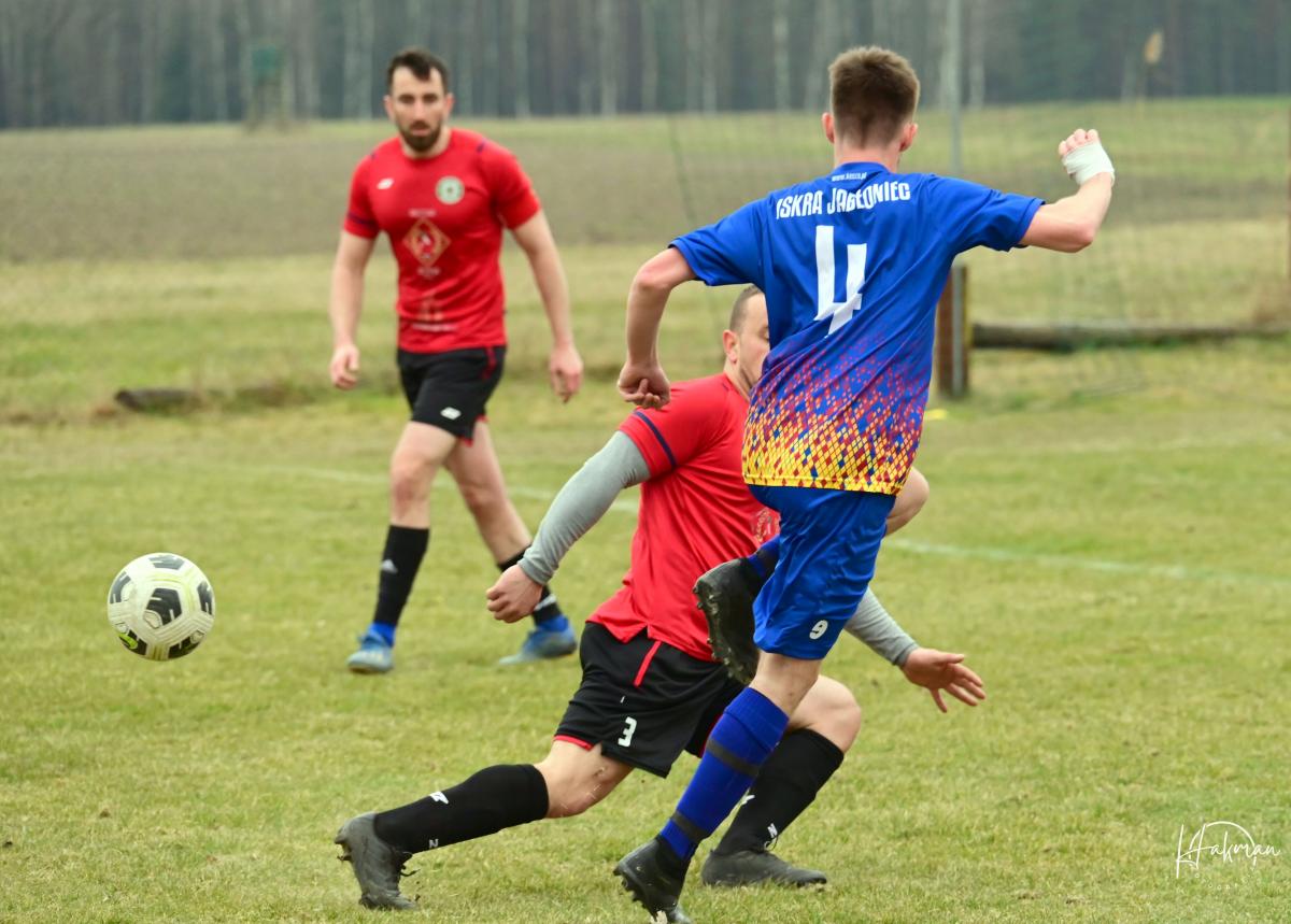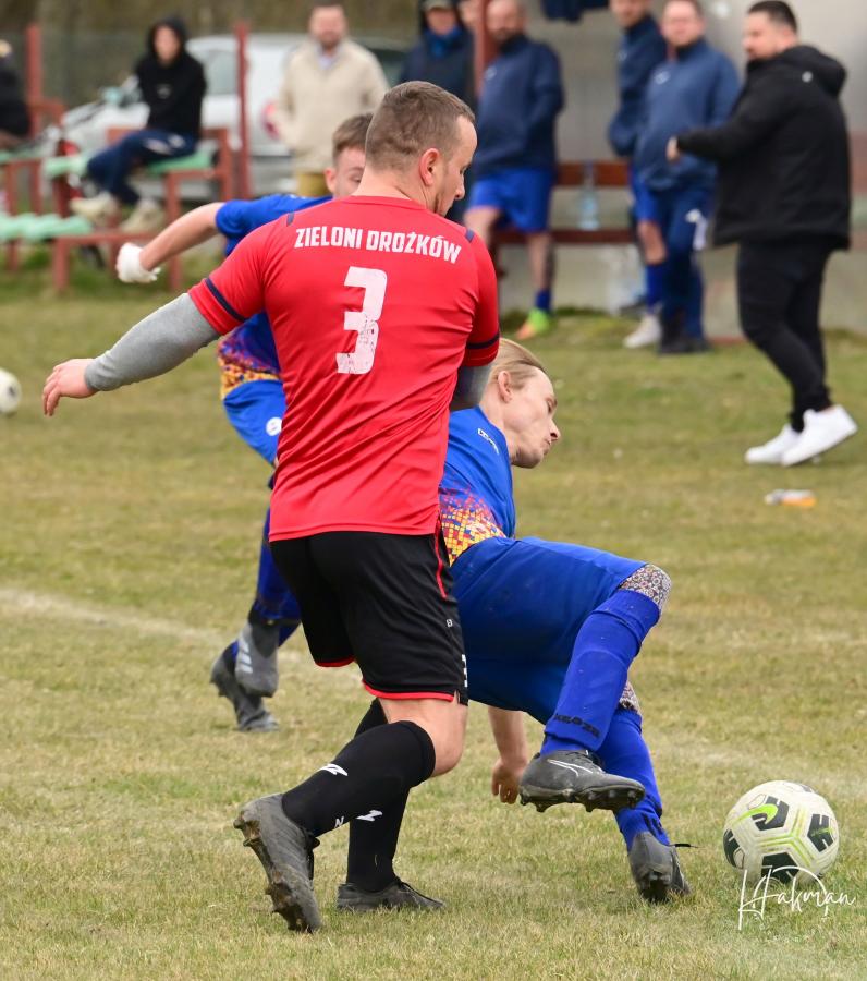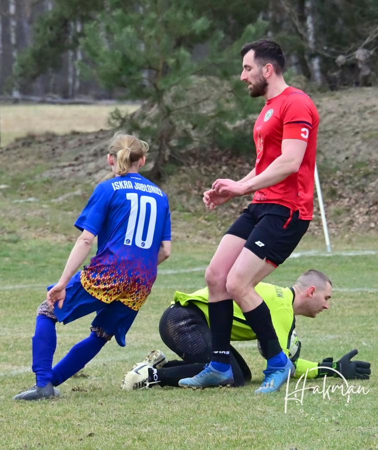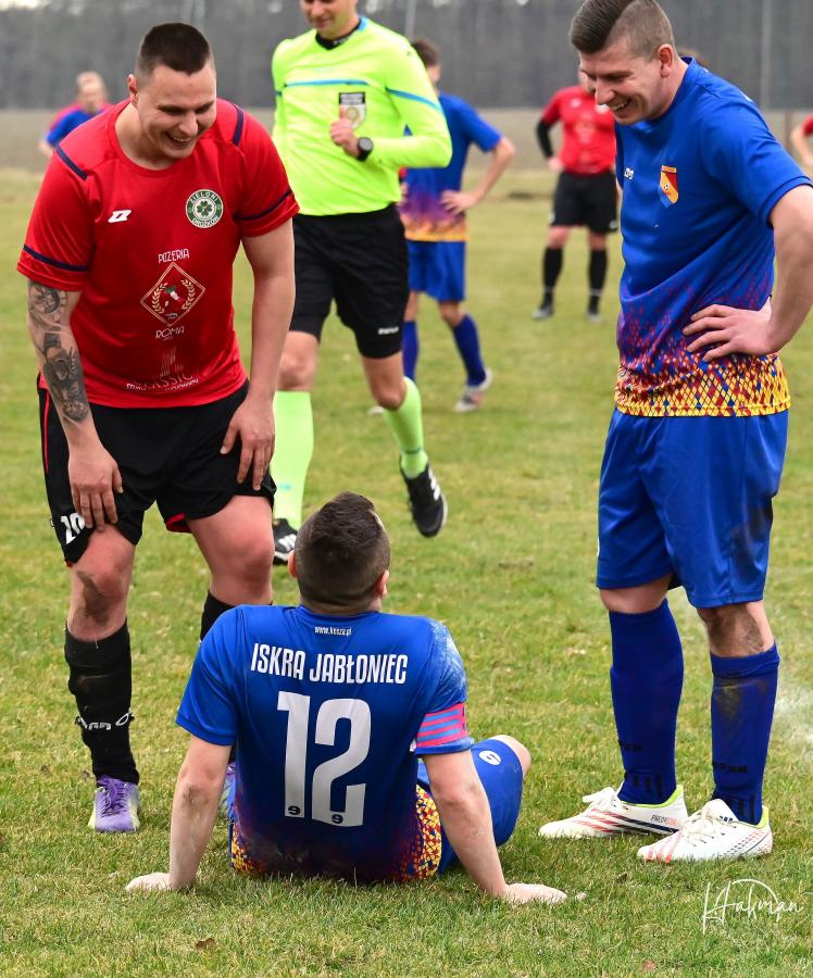 23 marca rozegrano pierwszą kolejkę w rundzie rewanżowej żarskiej B-klasy. Iskra Jabłoniec zremisowała na własnym boisku z Zielonymi Drożków 1:1. Bramkę dla gości strzelił w ostatniej minucie pierwszej połowy Łukasz Żółtański. Wyrównanie padło w drugiej połowie, a strzelcem był Paweł Owsiany. Arbiter pokazał w tym spotkaniu 13 żółtych(10 dla Iskry i 3 dla Zielonych) i 4 czerwone kartki. Wszystkie ujrzeli zawodnicy i trener Iskry Jabłoniec, która kończyła spotkaniu w ośmiu.