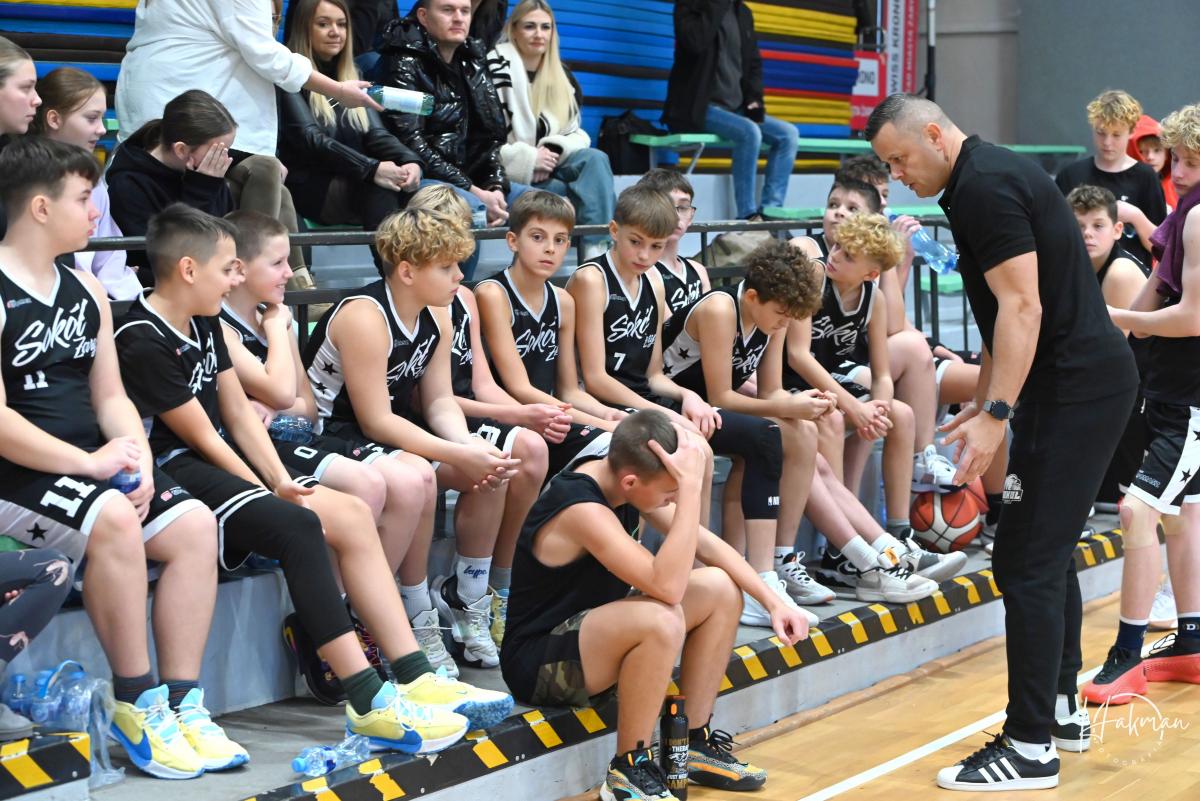-Można powiedzieć, że to taki weekend Sokoła, bo w sobotę seniorzy pokonują Zastal, a dzisiaj chłopcy z Akademii wygrywają dwa spotkania. Jestem bardzo zadowolony z postępów moich zawodników, bo wygląda to naprawdę nieźle. Bardzo mnie cieszy komunikacja pomiędzy trenerem, a zawodnikami .Ciężko nad tym pracowaliśmy i zaczęło to funkcjonować-twierdzi Leszek Korman, trener zespołu U-14. -Pracujemy dalej i bawimy się basketem.