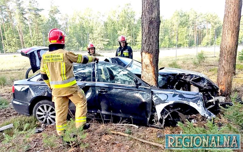 Wjechała w płot przy autostradzie, a potem w uderzyła w drzewo. Tak zakończyła się podróż kobiety siedzącej za kółkiem audi, które wypadło z drogi w poniedziałek, 22.07., o godz. 7.30.