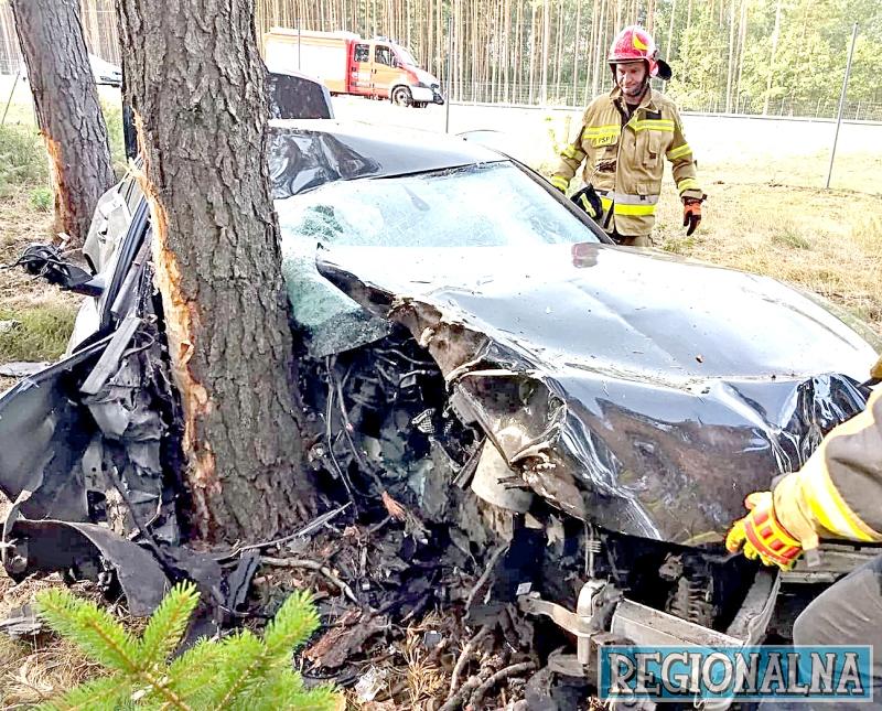 – Auto znajdowało się ok. 50 metrów od drogi. Miało uszkodzone cały przód oraz bok. Poszkodowana osoba ewakuowała się o własnych siłach. Strażacy odłączyli akumulator i sprawdzili, czy nie ma toksycznych wycieków – informuje bryg. Grzegorz Lisik, oficer prasowy żarskiej PSP.