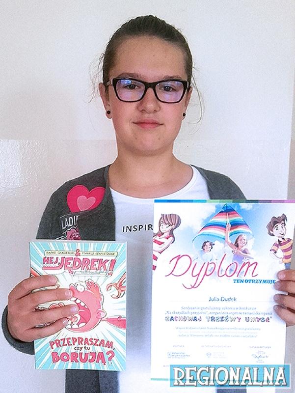 Julia Dudek z klasy VIIA Szkoły Podstawowej nr 1 w Szprotawie otrzymała wyróżnienie w ogólnopolskiej kampanii „Zachowaj Trzeźwy Umysł”.
