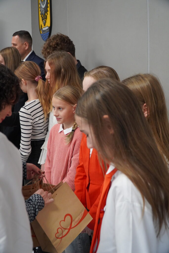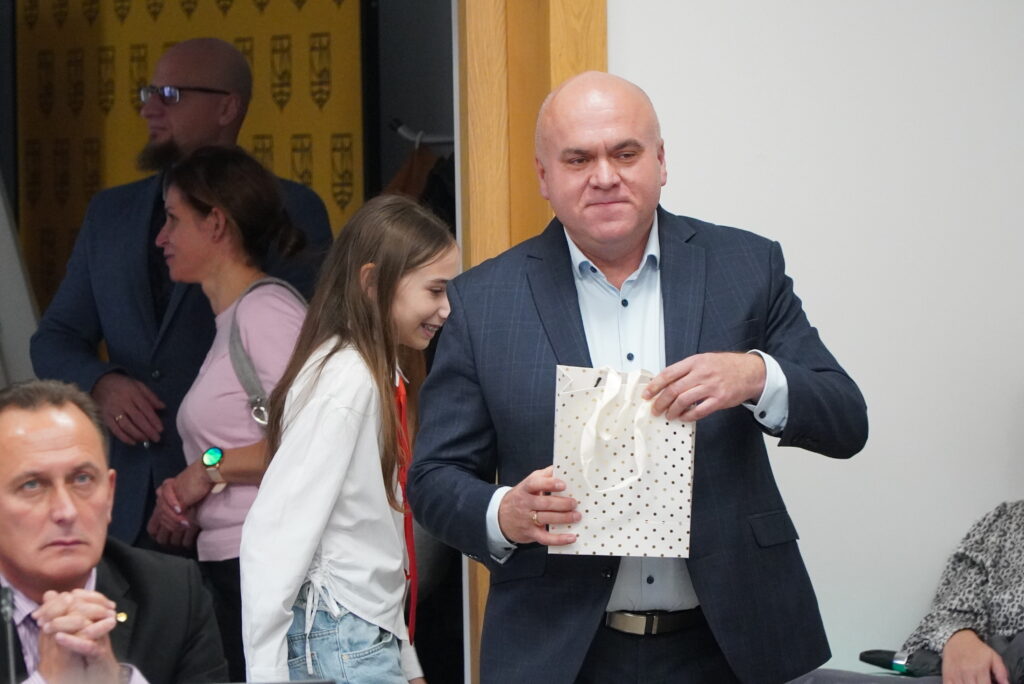Radni nagrozili młodzież brawami, a prezydent Beata Kulczycka i przewodniczący Daniel Roguski wręczyli upominki.