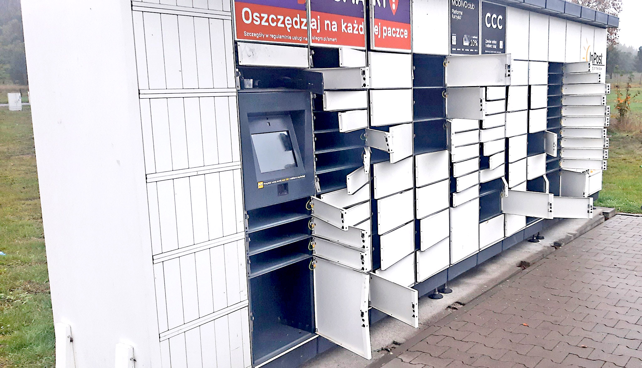 Otwarte puste przegródki w paczkomacie przy ul. Grunwaldzkiej w Żarach to był dziwny widok. – Normalnie jak kalendarz adwentowy – słyszymy.